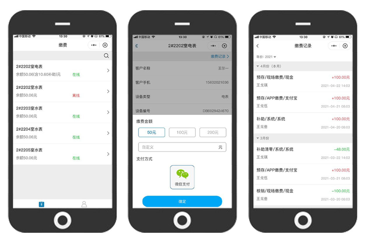 微信小程序+手机APP,电费账单一手掌握,足不出户预缴电费,免除线下缴费排队之忧,节约收费管理成本。