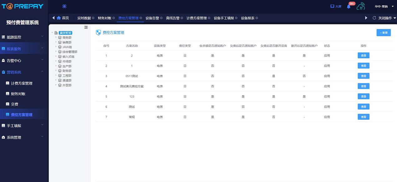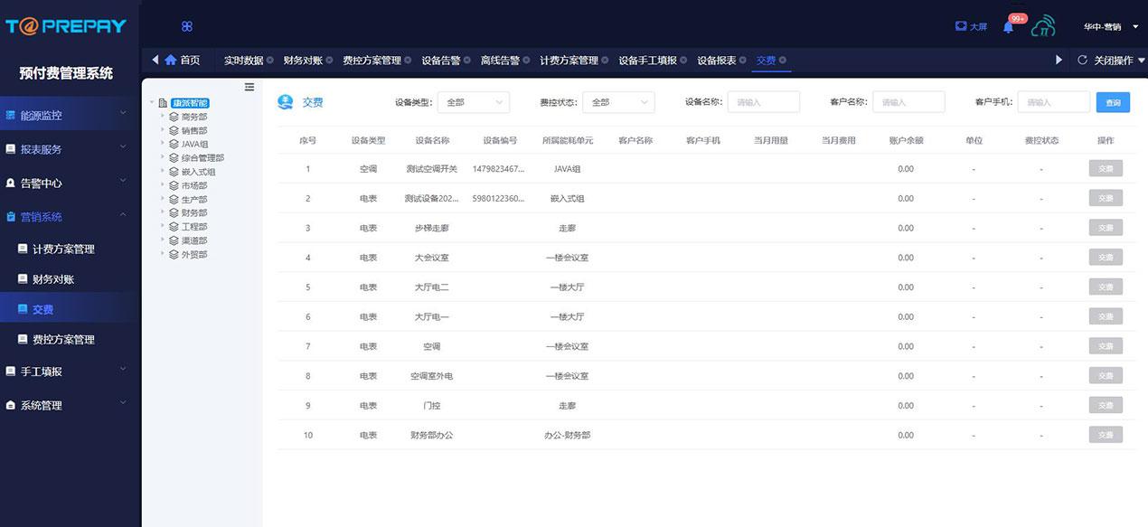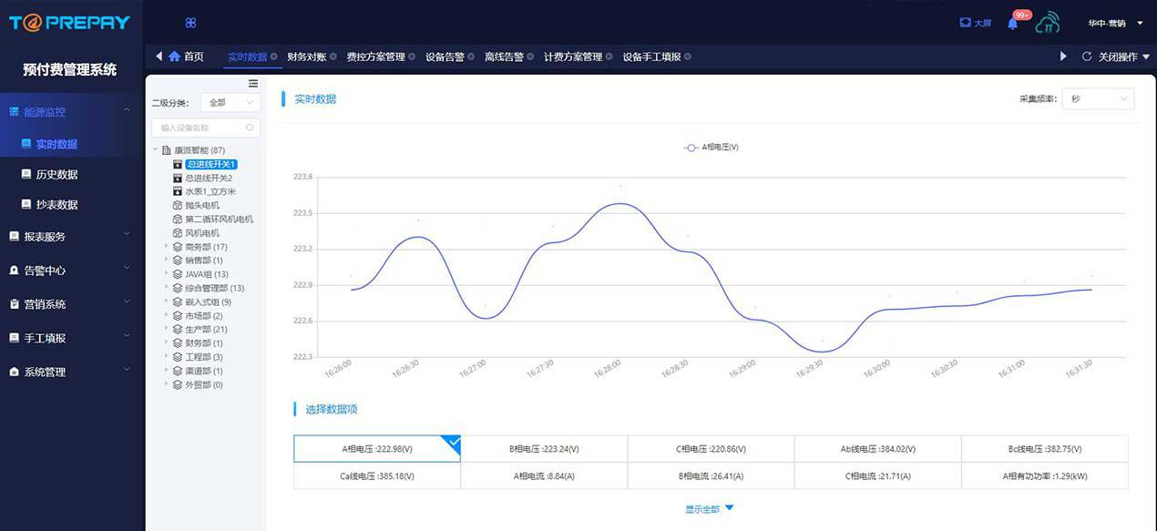 用户和管理员可查询权限范围内的预付费表或管控表用能状况,可提供能耗分析+财务轨迹一体式综合管理报表,方便用户及管理员进行用能分析与财务报表管理。