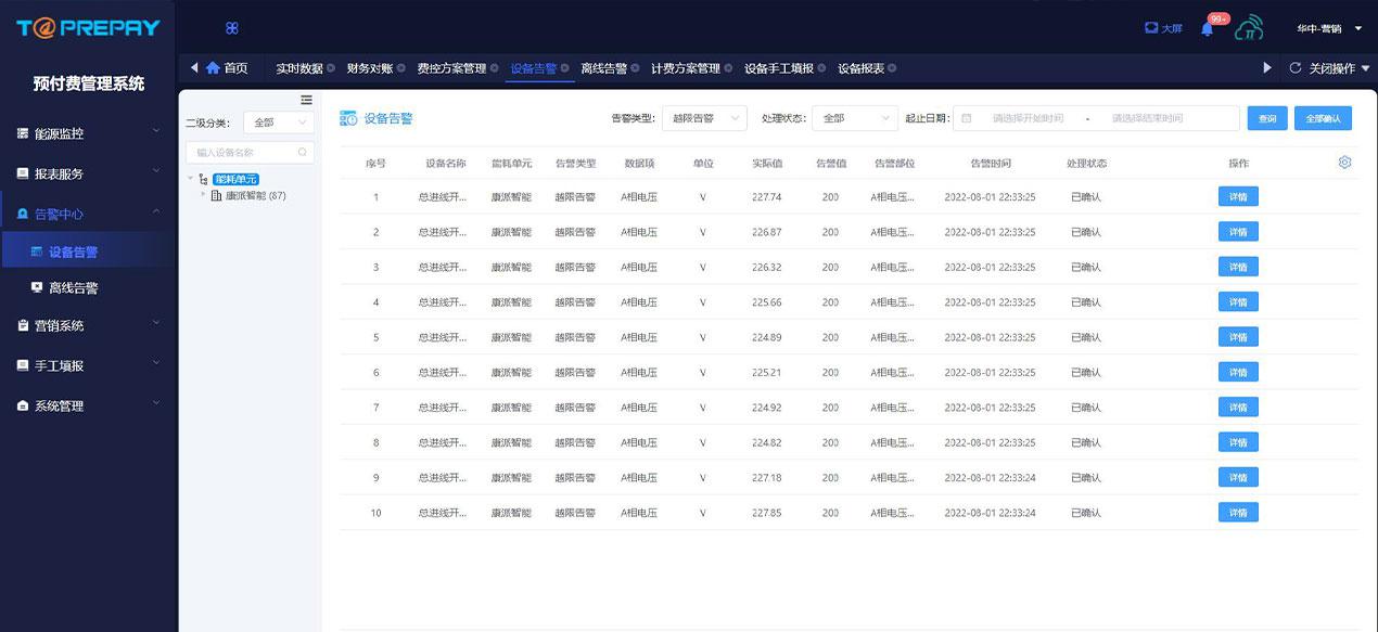 云顶国际预付费管理系统是一套完善的能耗集抄管理系统,系统采用购电、用电、自动断电的模式,无需管理人员上门抄表和收费,实现了抄表、收费、控制的三位一体,彻底杜绝了欠费现象的发生,减少管理人员和管理费用,较传统的收费方式具有极大优势。具备远程抄表、远程开户、远程售电、远程分合闸、能耗分析、数据报表、功率预警等功能,让电能集抄更便捷、收缴电费更无忧、用电管理更高效。