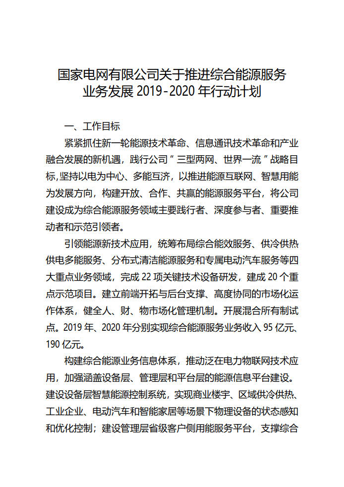 推进综合能源服务业务发展2019-2020年行动计划