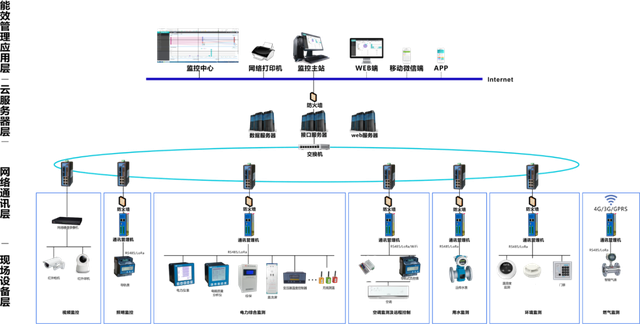 智慧能源管理系统平台采用分层分布式结构进行设计,详细拓扑结构如下: