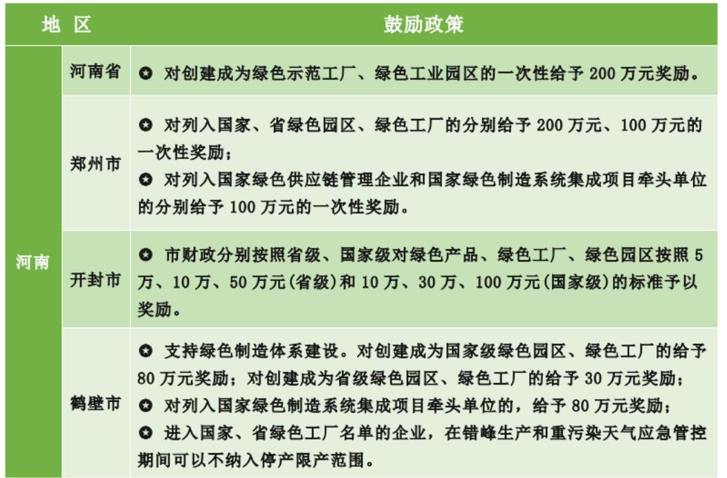 洛阳市:获评省级绿色工厂的企业,市财政给予50万元一次性奖励。