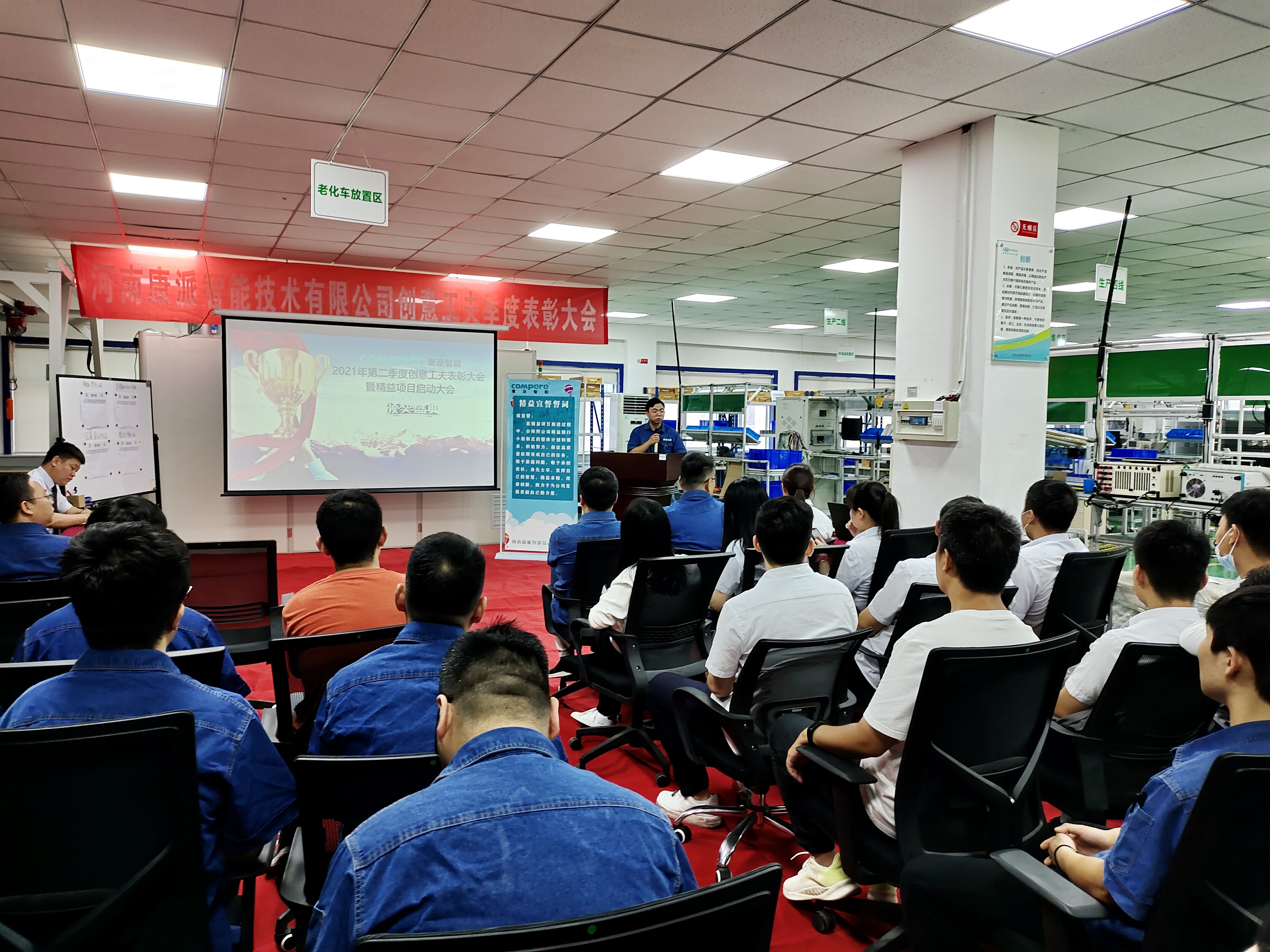 为表彰创意工夫优秀提案员工、进一步激发员工参与创意工夫提案的积极性、主动性与创造性,2021年7月30日,云顶国际2021年第二季度创意工夫表彰大会于东明路生产车间内举办,公司总经理刘庆永先生、精益顾问张小伟老师共同出席,为创意工夫优秀提案获奖员工颁奖,并针对公司创意工夫和精益工作发表重要讲话。