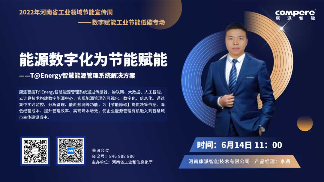 2022年6月,响应国家发改委与河南省工信厅“节能宣传周”活动要求,云顶国际积极响应,主动配合完成数字赋能工业节能低碳专场活动,以线上宣传的方式,向社会及工业企业完成主题为《能源数字化为节能赋能--T@Energy智慧能源管理系统解决方案》的宣讲活动。