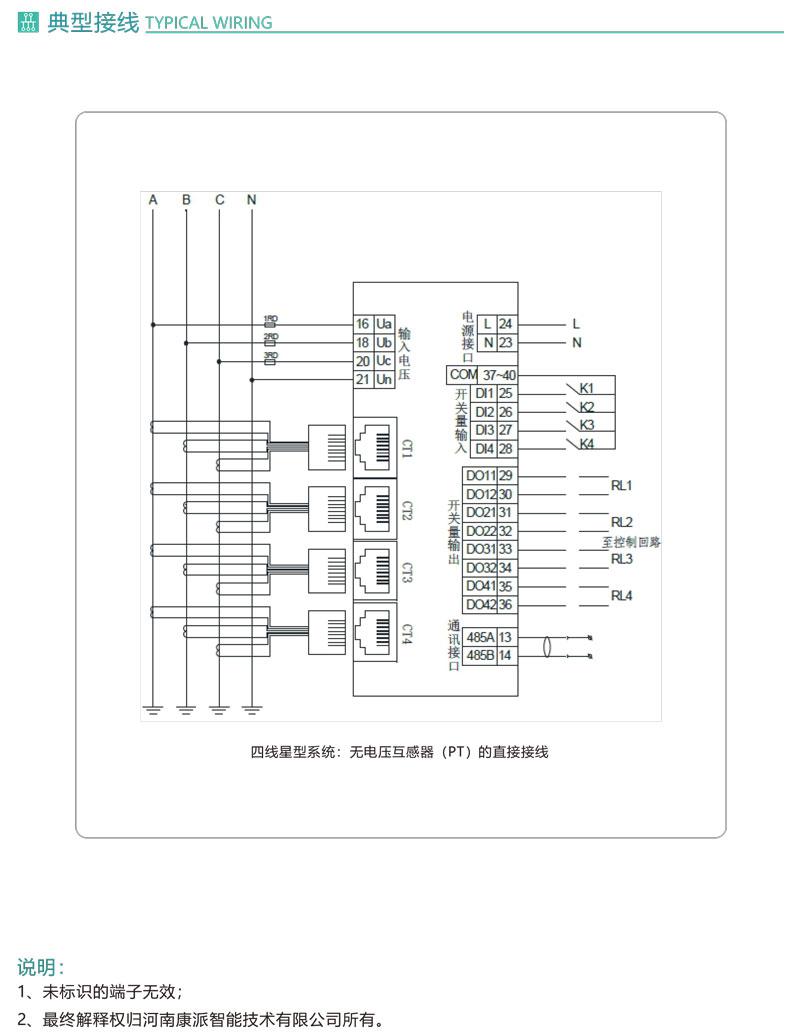 6.标配1路RS485通讯接口,Modbus-RTU、MQTT或DL/T645-2007通信协议