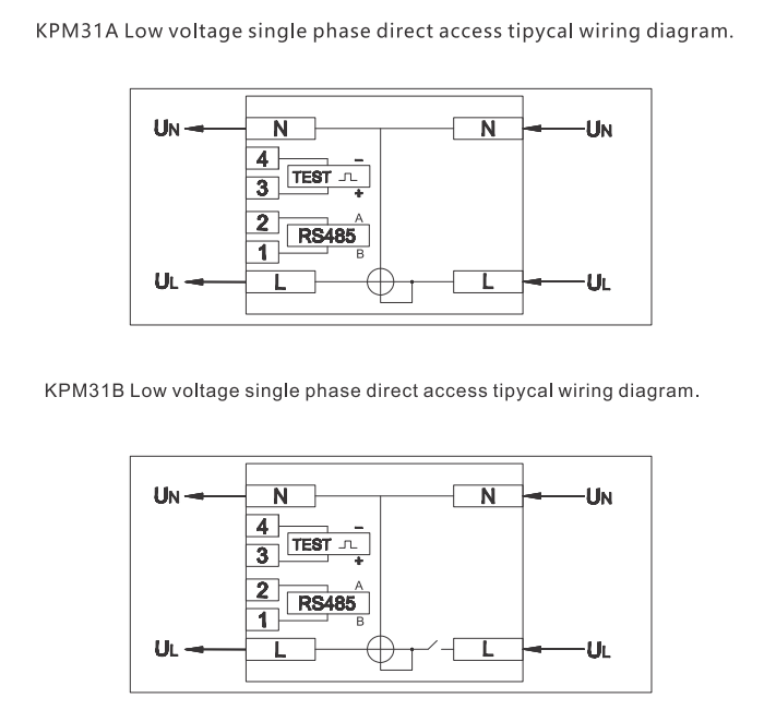 Example: KPM 31A-1.5(6):Rated AC220V /1.5A(Max 6A), basic type multi-rate energy statistics, historical energy statistics single-phase guideway type smart meter.