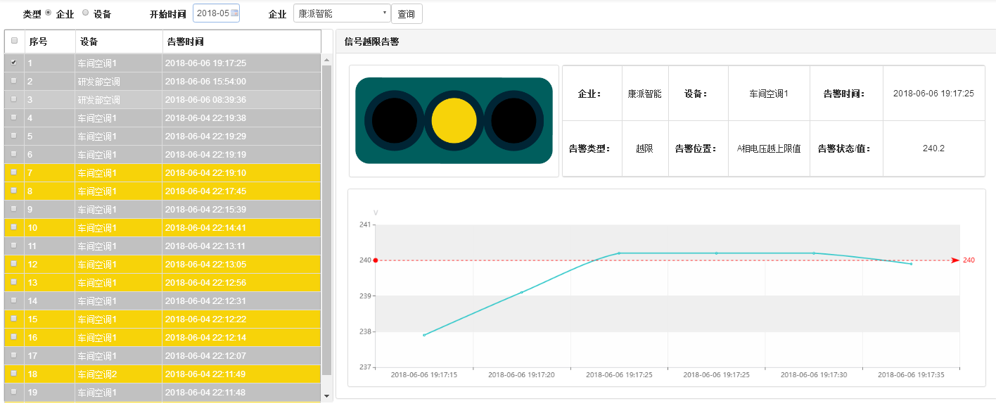 (5)监控重点区域的电气设备运行状态、配电室环境温度、烟感、浸水,预防电气火灾的发生及其他危害的发生,将电气危害的损失最小化。