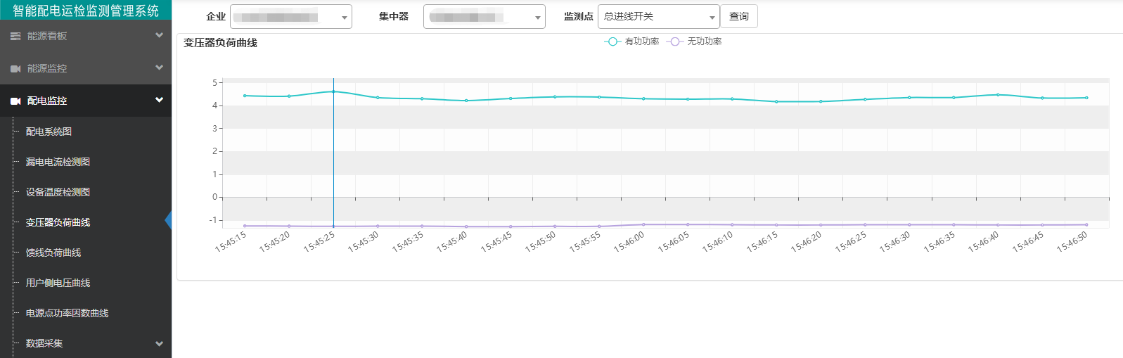 可以查询系统的配电系统、漏电电流检测、设备温度检测图、变压器负荷曲线图、馈线负荷曲线、用户侧电压曲线、电源点功率因数曲线等多种曲线,准确掌握用电质量的变化情况,预判故障降低设备运行故障率。