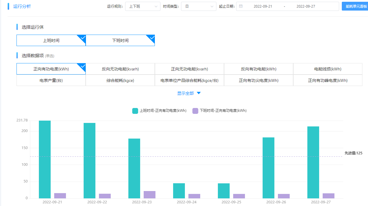 观察数据变化。在“能耗单元-运行分析”模块选择日数据观察近一周数据变化: