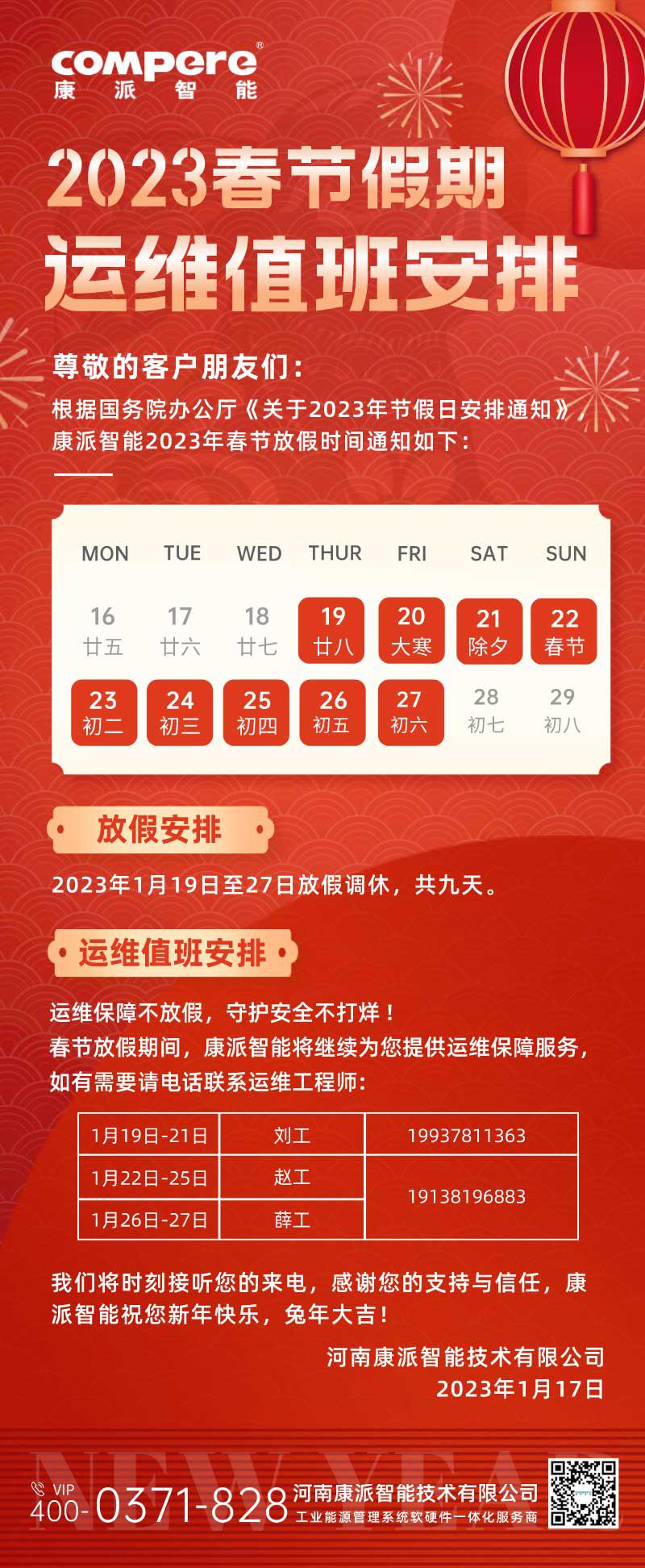 2023年云顶国际春节放假通知