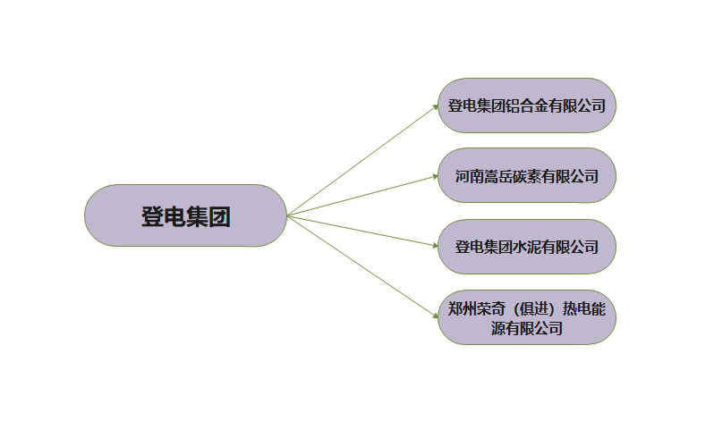 登封电厂集团有限公司总计5个厂区组成,分别为:登封电厂集团有限公司(总公司,无生产用电)、登电集团铝合金有限公司、河南嵩岳碳素有限公司、登电集团水泥有限公司和郑州荣奇(俱进)热电能源有限公司。因此可对其工序发划分为四个工序,最终生产铝制品、水泥、炭块并外供电力。